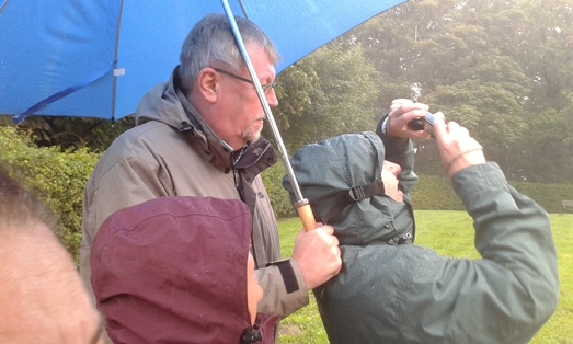 Erster Halt bei leichtem Nieselregen - Frühstückspause auf dem Parkplatz des Kaiser-Wilhelm-Denkmals an der Porta Westfalica.