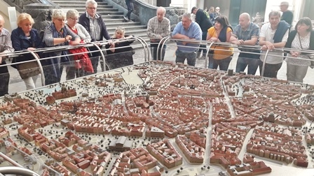 Bevor es los ging, erläuterte uns unsere Führerin in der imposanten Rathaushalle vier Stadtmodelle: Hannover im Mittelalter, in der Vorkriegszeit, nach den Kriegszerstörungen im Jahr 1945 und die heutige Innenstadt.