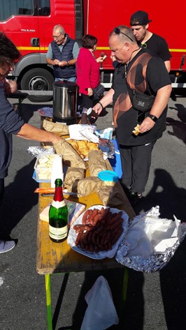 Unterwegs durfte natürlich die traditionelle Frühstückspause nicht fehlen, bei der wir uns mit Snacks von Barbara und - unter dem Knallen von Sektkorken - mit Getränken von Hans Walenzik, verwöhnen ließen.