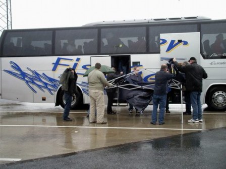 Eine Gruppe fuhr bereits Donnerstags mit dem Bus voraus, verabschiedet von Kompaniechef