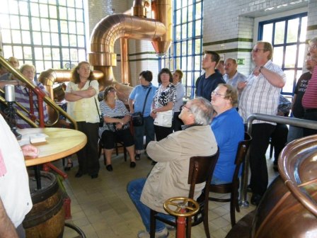 Wieder zurück in Prag besuchten wir am Abend die traditionsreiche Brauerei und Gaststätte „U Fleku“, in der auf acht Sälen und einem riesigen Innenhof verteilt gleichzeitig 1200 Gäste bewirtet werden können. Hier wird seit über 500 Jahren ohne Unterbrechung ein dunkles Bier gebraut, von dem wir natürlich das ein oder andere Exemplar verzehrt haben. Außerdem wurde zum deftigen böhmischen Essen zur besseren Verdauung der Kräuterlikör „Becherovka“ gereicht - sprichwörtlich bis zum Abwinken! Die musikalische Unterhaltung durch Akkordeonspieler durfte natürlich nicht fehlen. Es war ein lustiger Abend, der vielen noch lange in Erinnerung bleiben wird.